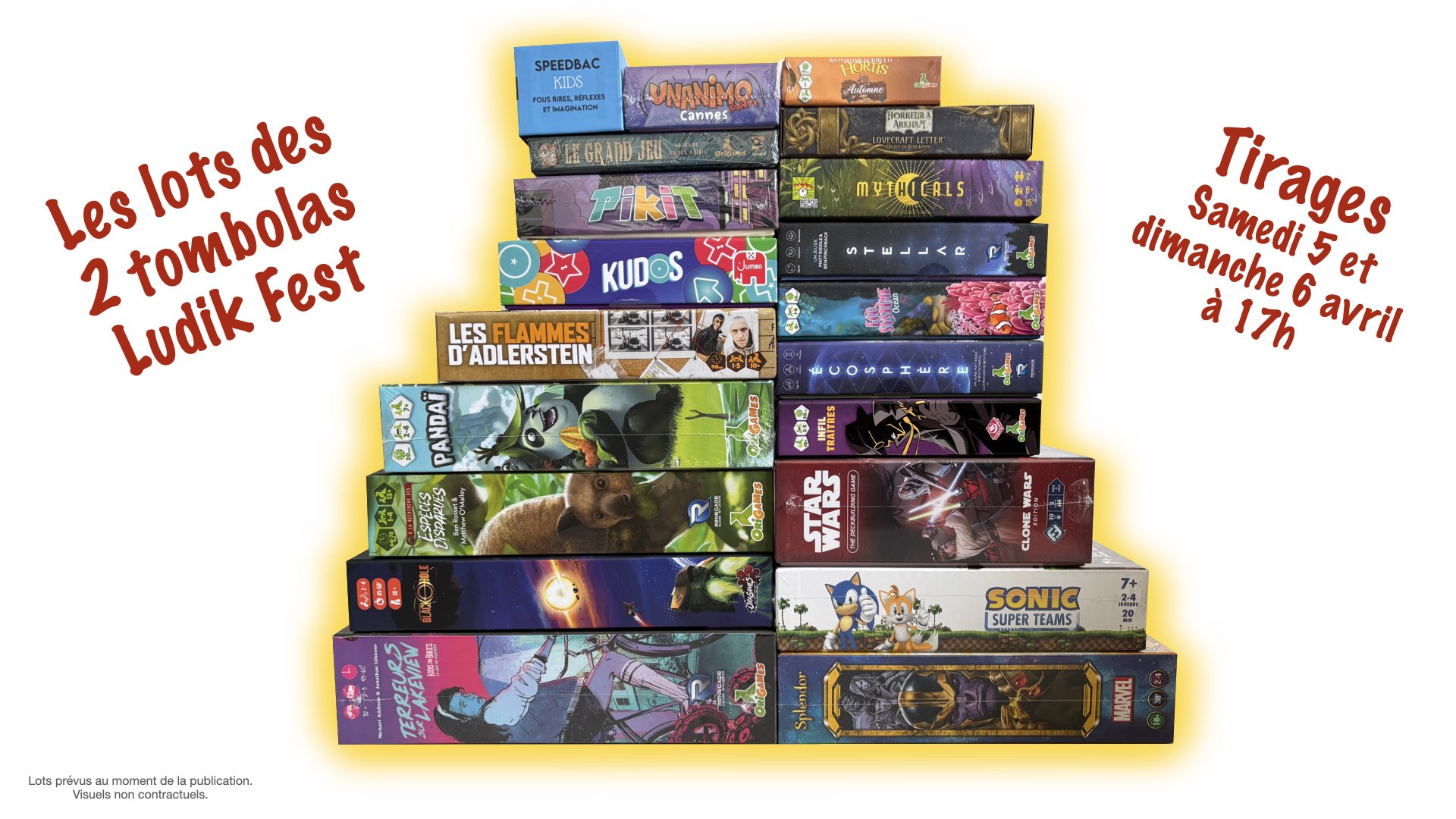 2 tombolas sont prévues pendant le Ludik Fest le samedi 5 et le dimanche 6 avril.
